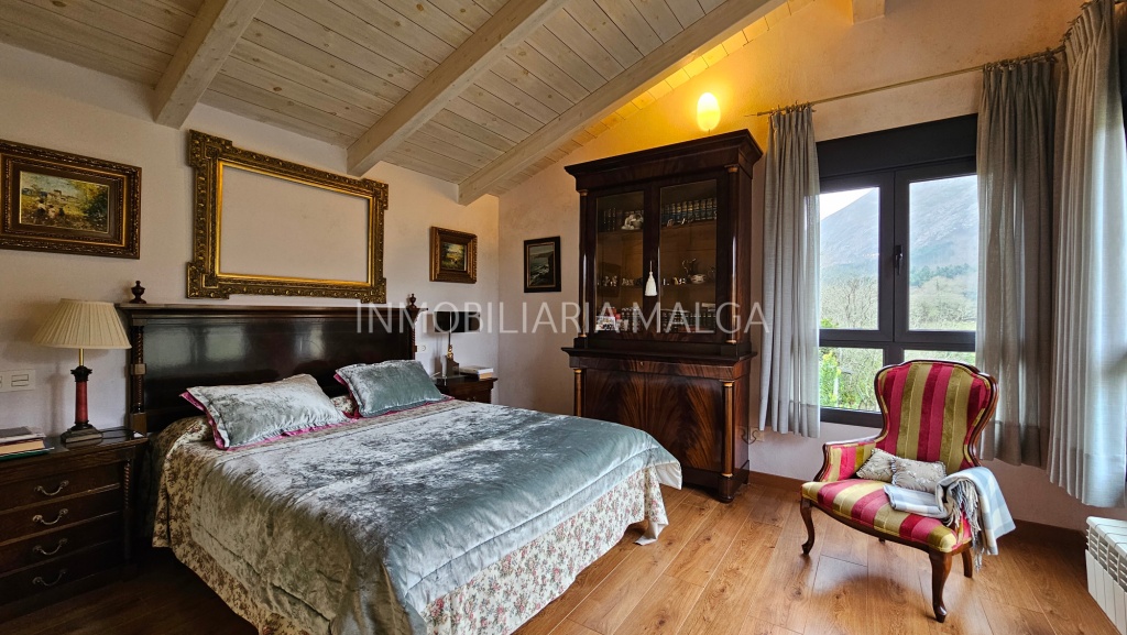 Vivienda de aproximadamente 159 m², distribuida en dos plantas y totalmente reformada, conservando el carácter de la arquitectura tradicional asturiana. Destacan sus excelentes calidades, con acabados en madera de roble y castaño, que aportan calidez y elegancia. Cuenta con una parcela de unos 600 m², ideal para disfrutar del entorno y de las vistas a la montaña.
